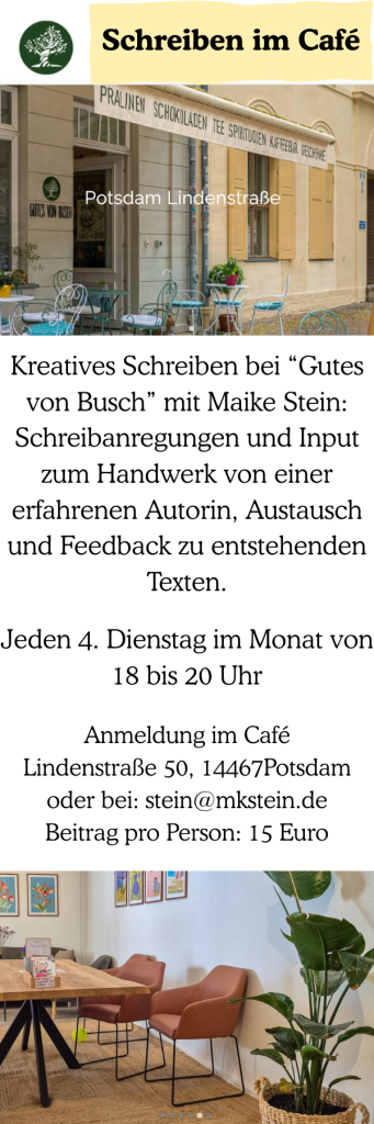 Ab dem 28.10. biete ich im Potsdamer Café „Gutes von Busch“ einen regelmäßigen Schreibtreff an!